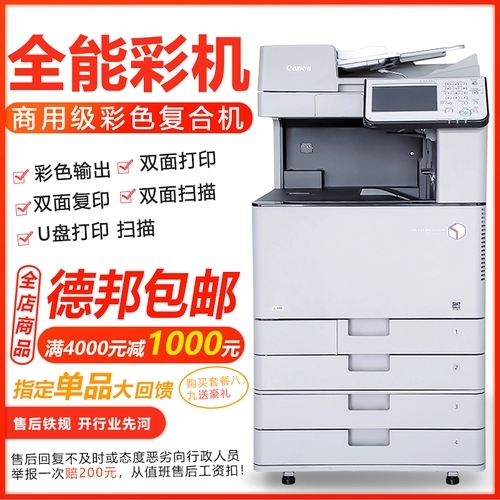 品牌: Canon/佳能佳能型号: C3330涵盖功能: 传真 复印 打印 扫描打印机类型: 彩色激光颜色分类: 套餐一 双纸盒(包邮) 套餐二 双纸盒+装订器(包邮) 套餐三 四纸盒(包邮) 套餐四 四纸盒+装订(包邮) 套餐五 C5235(包邮) 套餐六 C5240(包邮) 套餐七 C5250(包邮) 套餐八 C5255(包邮) 套餐九 C3530 双纸盒 (包邮)白色 套餐十 C5550 四纸盒 (包邮)白色最大幅面: A3及A3以上是否支持网络打印: 有线/无线网络打印是否支持自动双面打印: 支持套餐类型: 官方标配能效等级: 一级打印速度: 30页版本类型: 美国适用场景: 商务办公一体机类型: 彩色激光多功能一体机耗材类型: 鼓粉分离远程打印方式: 移动app打印