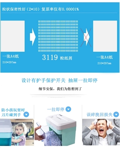 碎纸机品牌: 安锐型号: AR210D售后服务: 店铺三包碎纸能力: 30张/次(含)-39张/次(含)碎纸箱容积: 50L以下碎纸方式: 粒状碎纸机类型: 电动碎纸机上市时间: 2006-11-11