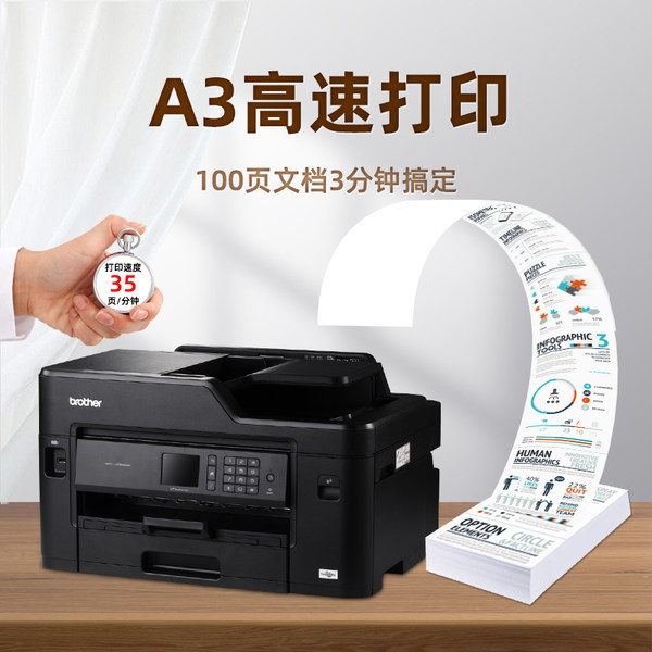 品牌: brother/兄弟型号: MFC-J3930DW涵盖功能: 传真 复印 打印 扫描打印机类型: 彩色喷墨接口类型: USB 以太网颜色分类: J2330DW(A3/A4打印+A4连续复印扫描传真)注册联保2年 J3930DW(a3a4自动双面打印复印扫描传真双纸盒)注册联保2年 T4500(a3原装内置连供) T4000DW(A3a4打印 不能复印扫描)最大幅面: A3及A3以上是否支持自动双面打印: 自动套餐类型: 官方标配 套餐一 套餐二 套餐三 套餐四生产企业: 兄弟能效等级: 一级电信设备进网许可证编号: 09-8632-170095打印速度: 黑白35页、彩色27页/每分钟耗材类型: 分体式墨盒远程打印方式: 移动app打印是否原厂连供打印机: 是墨盒数量: 4色墨盒